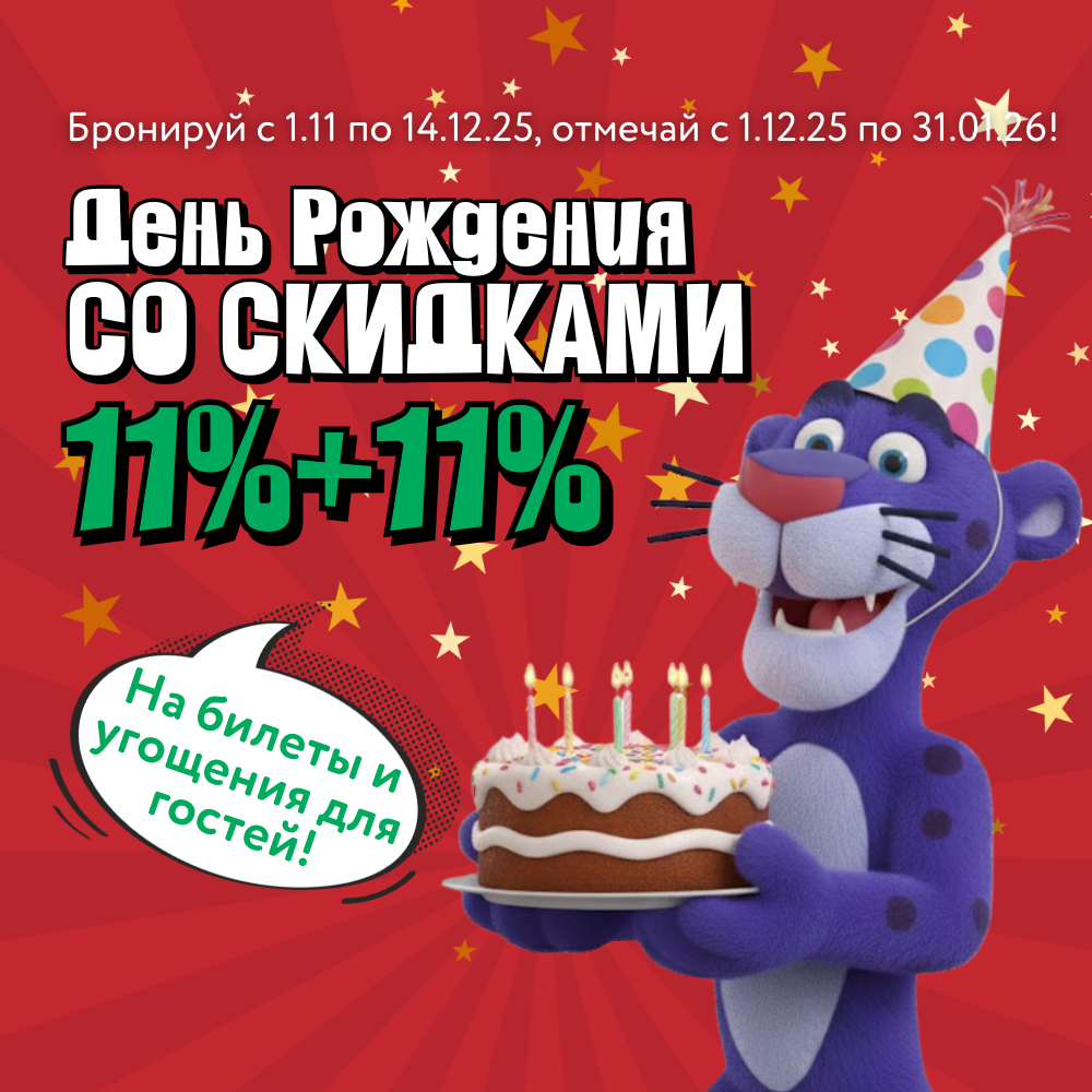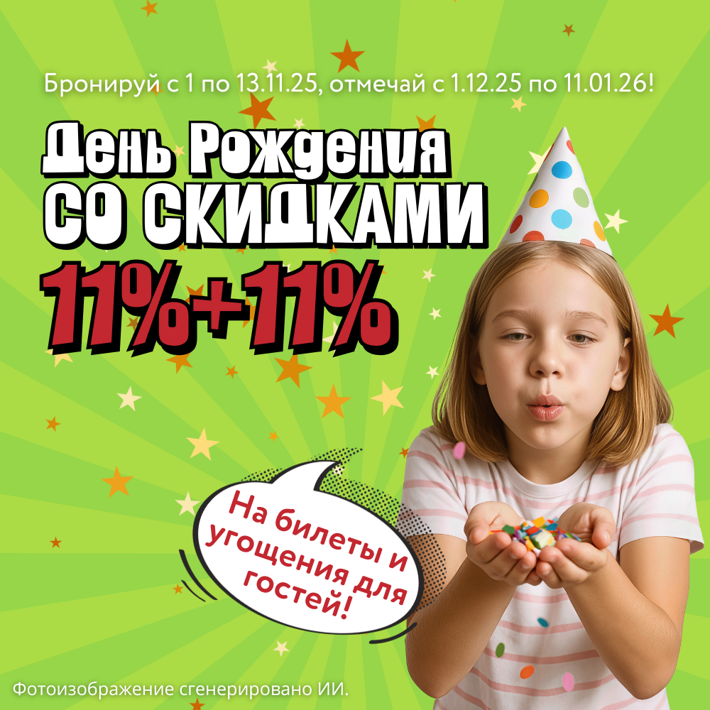 Бронируй День Рождения с 1 ноября по 14 декабря и получай волшебные скидки:
